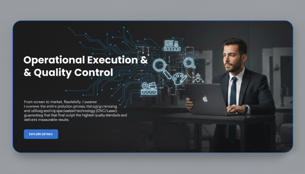 From screen to market, flawlessly. I oversee the entire production process, including managing suppliers and utilizing specialized technology (CNC/Laser), guaranteeing that the final output meets the highest quality standards and delivers measurable results.